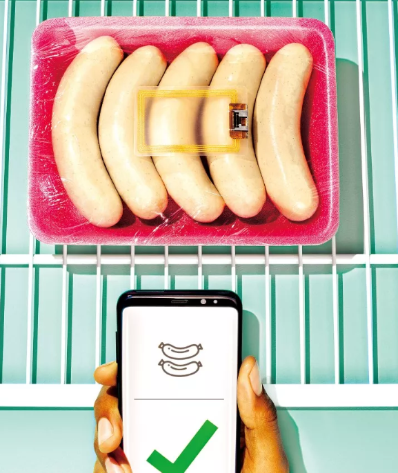 這是2028年。星期三晚上8點,你餓壞了。你盯著冰箱里僅剩的食物:一包令人沒胃口的灰色香腸。它原本就是這樣的嗎?還能安全食用嗎?在2018年,你只能依靠自己的嗅覺來賭上一把。而在2028年,你只需在包裝上方搖動智能手機。智能手機會詢問包裝內(nèi)嵌入的傳感器,該傳感器可測量肉類分解的有關氣體濃度。智能手機上會顯示“未來20小時內(nèi)可安全食用”的信息,然后提供一份香腸烹飪食譜。你餓得連菜譜都來不及看,就撕開包裝,把香腸扔進煎鍋里,扔掉它的包裝,以及高技術(shù)傳感器。