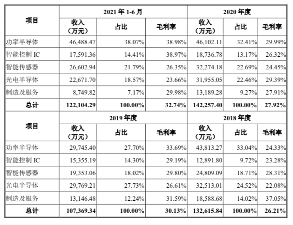 在招股書中,以IGBT為主的功率半導(dǎo)體是公司最顯眼的業(yè)務(wù),2021年上半年這塊業(yè)務(wù)取得的收入為4.6億元,占主營業(yè)務(wù)收入的比重為38%。